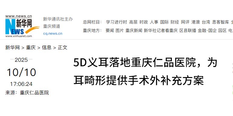 5D義耳落地重慶仁品醫(yī)院,為耳畸形提供手術(shù)外補(bǔ)充方案【閱讀】